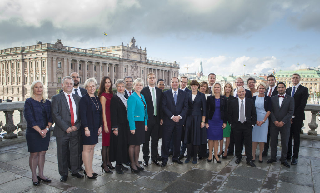 Bild på Sveriges regering. Det är partierna Vänsterpartiet, Miljöpartiet och Socialdemokraterna som tillsammans bildat nuvarande regering.
