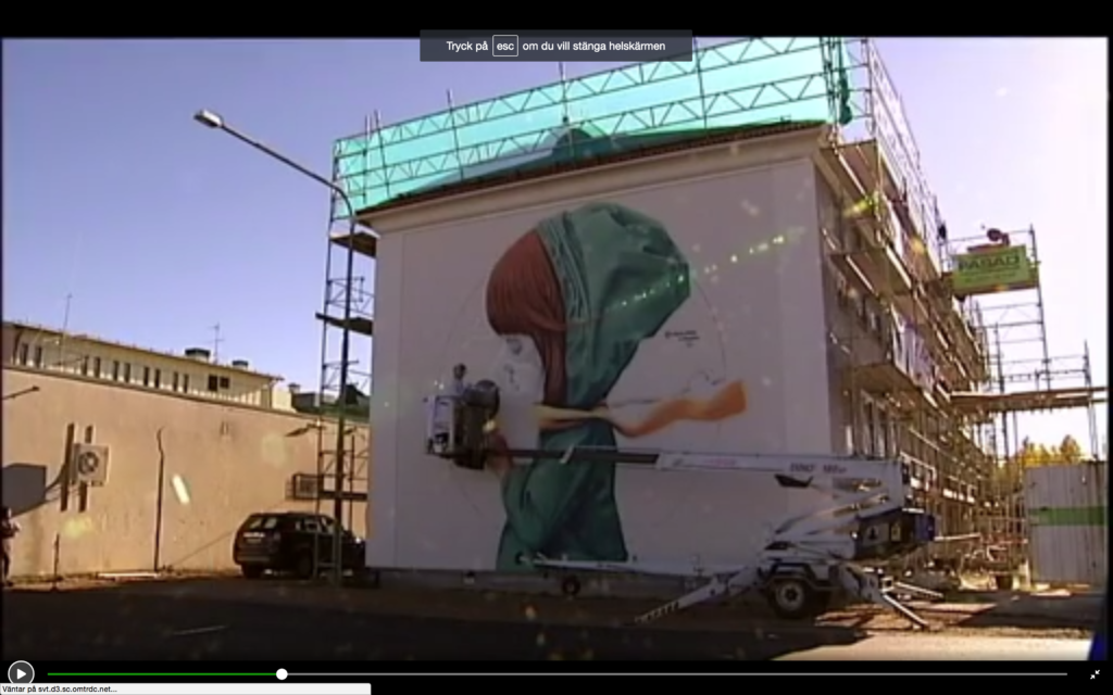 "Yash" jobbar på sin väggmålning. Foto: SVT (screenshot)