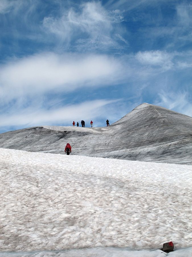 Uppe på toppen finns ett tjockt istäcke.