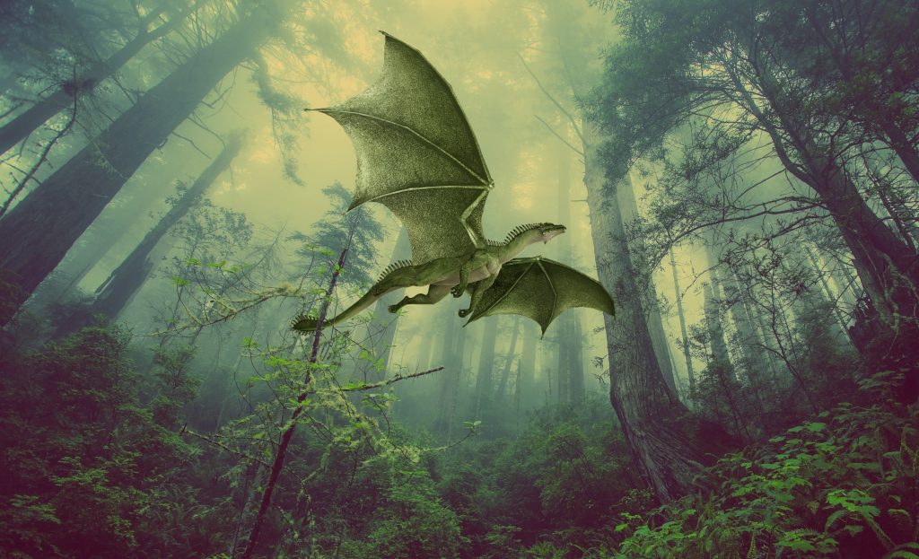 Draken böjde sig ner, så att vingarna nådde marken.