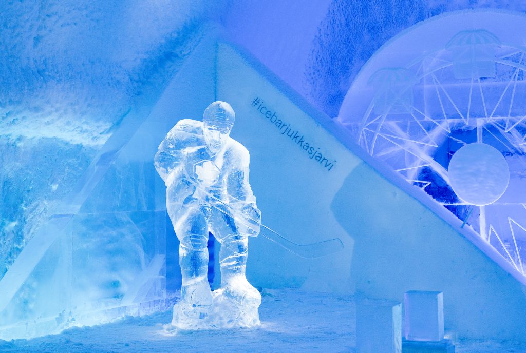 Börja Salming som isstaty i Jukkasjärvi. Statyn har gjorts av Tjåsa Gusfors. Foto: Swedish Lapland.
